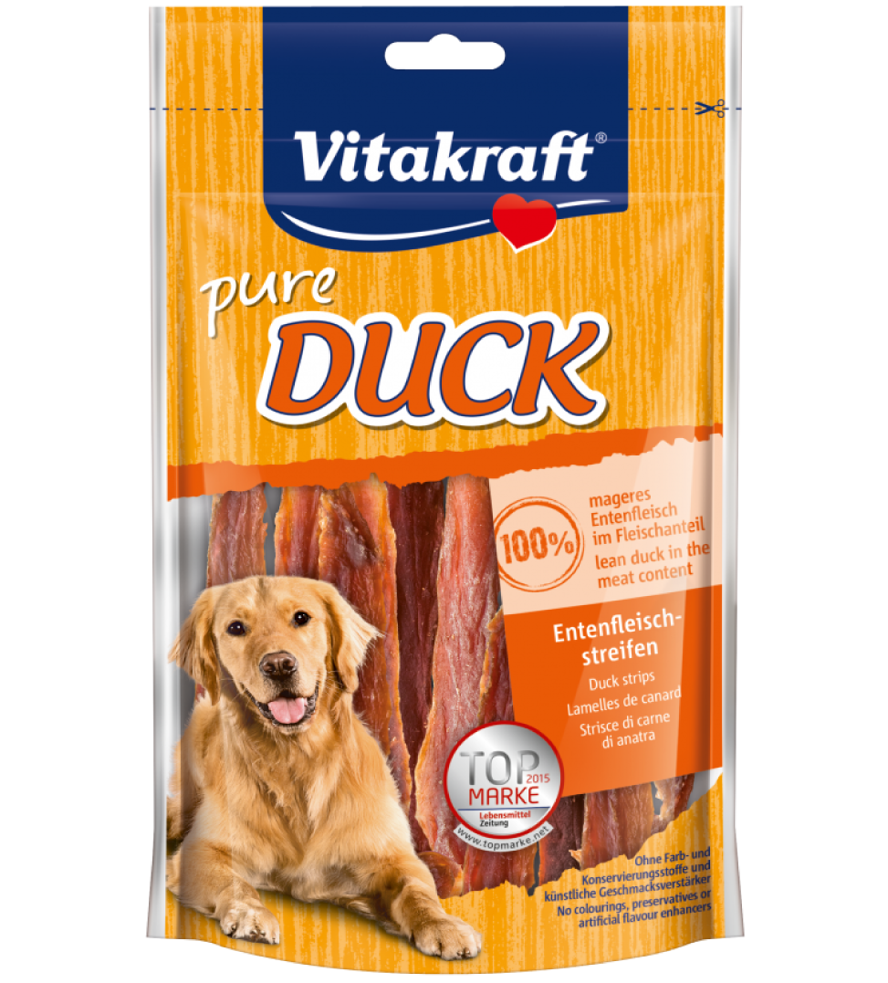 Raffinati snack di pura carne di Anatra nelle versioni: Filet solo pura carne; Bonas pura carne avvolta su un bastoncino di pelle di bovino o un ossetto di calcio.