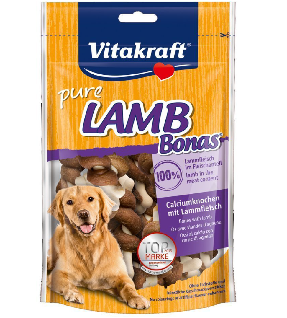 Raffinati snack di pura carne di Agnello nelle versioni: Filet solo pura carne; Bonas pura carne avvolta su un bastoncino di pelle di bovino o un ossetto di calcio.