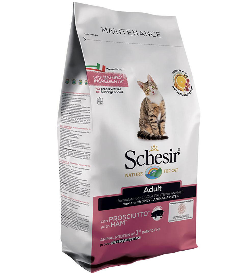 26% proteine di suino trasformate (8% prosciutto), riso*, orzo*, grasso animale purificato, proteina di patata, glutine di mais, polpa di barbabietola essiccata*, 1% lievito di birra, 1% semi di lino*, farina di piselli* , 1% fruttoligosaccaridi (fos), 1% polpa di cicoria*, 1% olio di girasole, pirofosfato, di sodio, cloruro di potassio, 0,1% yucca schidigera** Ingredienti naturali.