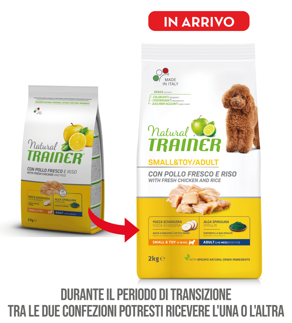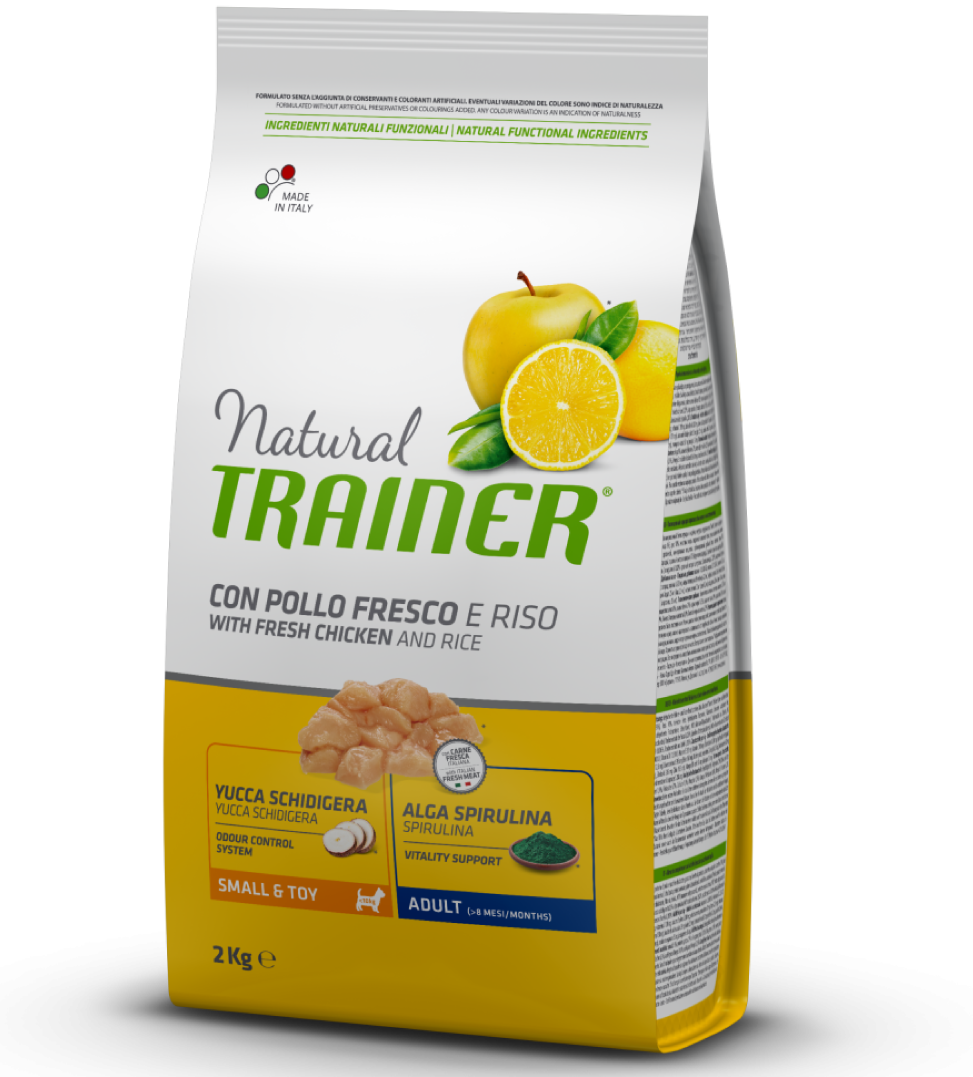 La linea Trainer Natural è stata appositamente studiata - attraverso una formulazione speciale - per far fronte a tutte le esigenze nutritive ed energetiche specifiche dei cani di piccola taglia (sensibilità digestiva, problemi articolari, sovrappeso etc). L’alimento è ideale per la dieta quotidiana perchè le ricetta - data da un’esclusiva integrazione di ingredienti ed estratti naturali - conferisce energia rivitalizzante e rinvigorente. Aiuta, inoltre, a mantenere la massa muscolare magra, limita l’invecchiamento cellulare e migliora l’igiene orale e la funzionalità intestinale - grazie all’elevata digeribilità.