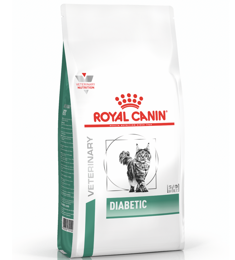 Royal Canin Veterinary Diet Diabetic è un alimento secco dietetico completo per gatti destinato ai soggetti affetti da problemi diabetici e tendenti al sovrappeso .