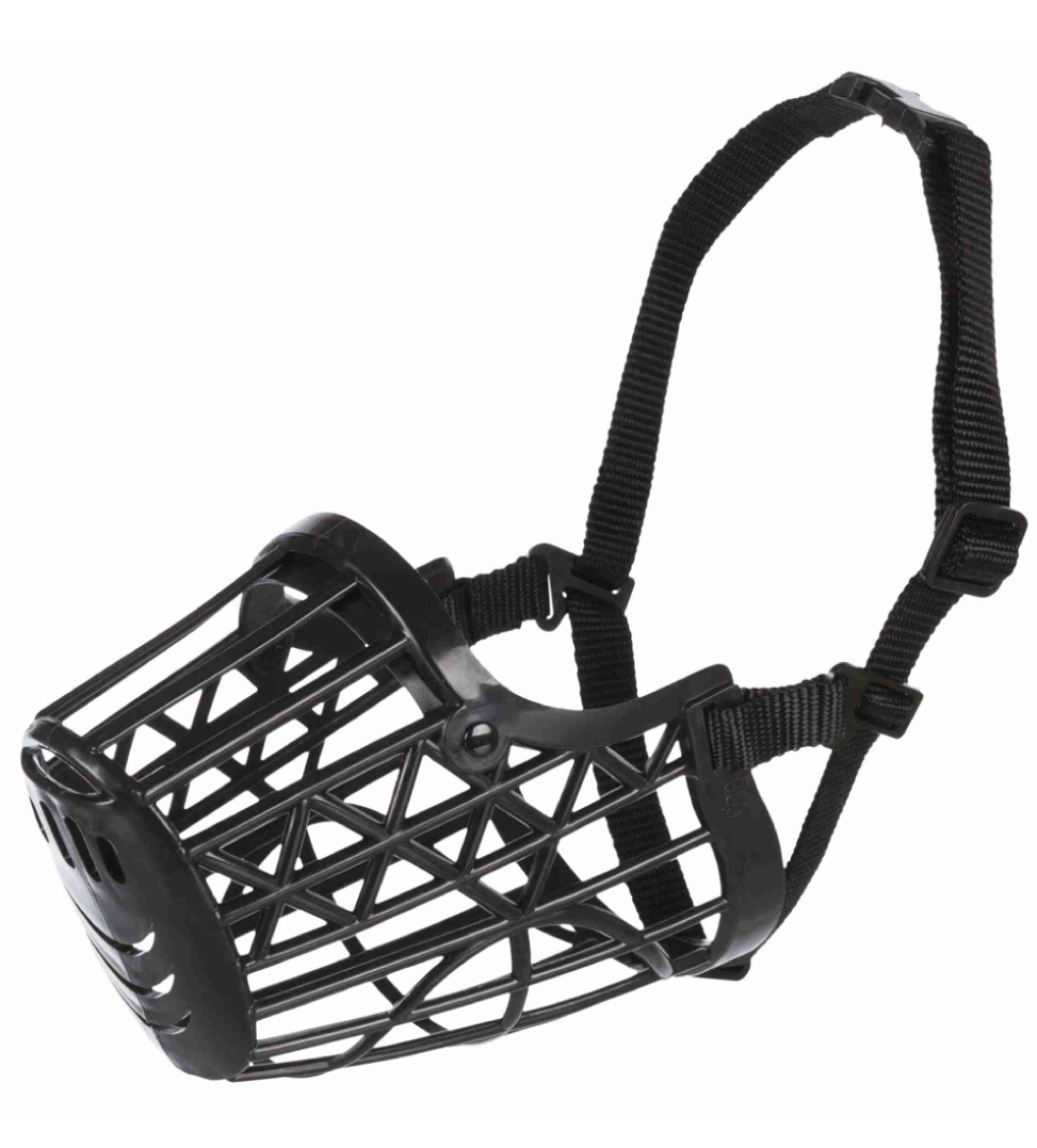 Museruola in plastica/nylon che impedisce di mordere.