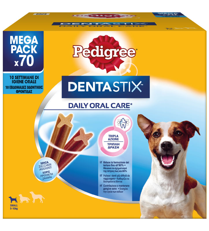 E' provato che Pedigree Dentastix riduce la formazione di tartaro fino all'80%, ciò grazie all'azione sinergica della sua composizione speciale e dei principi attivi ad azione pulente.