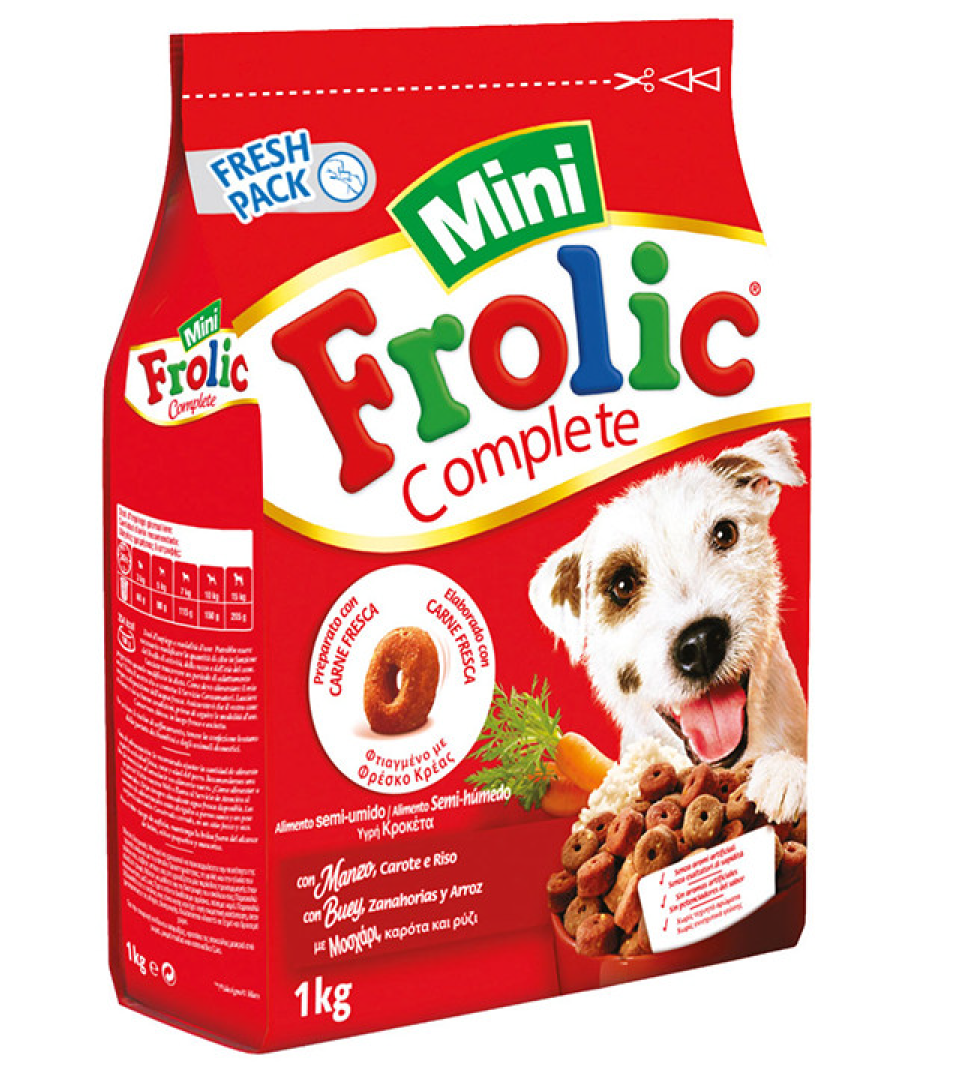 Le crocchette/biscotti per cani Frolic sono un alimento per cani, preparato in modo armonioso e delicato. Le crocchette contenute nell'alimento sono molto succose e preparate con carne fresca, per un'irresistibile esperienza durante la masticazione.