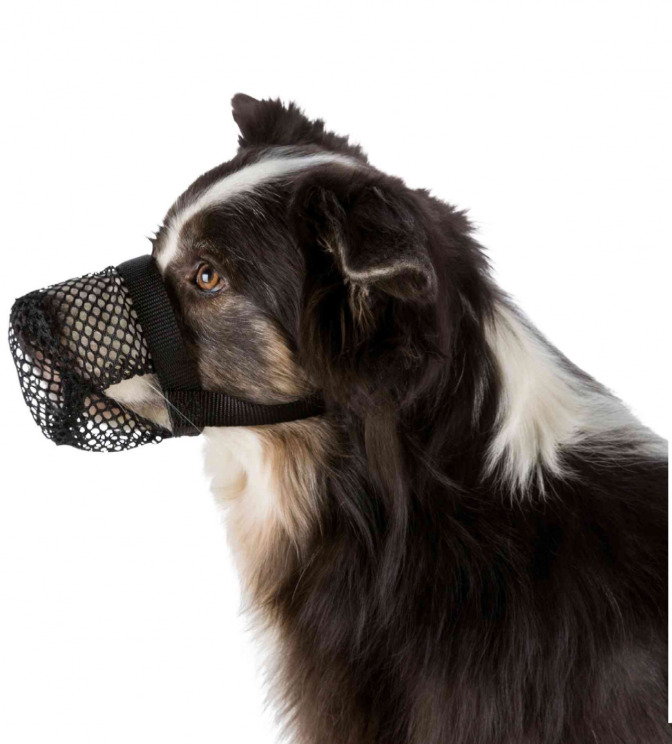 Museruola che impedisce al cane di mangiare bocconi velenosi o altre cose durante la passeggiata.