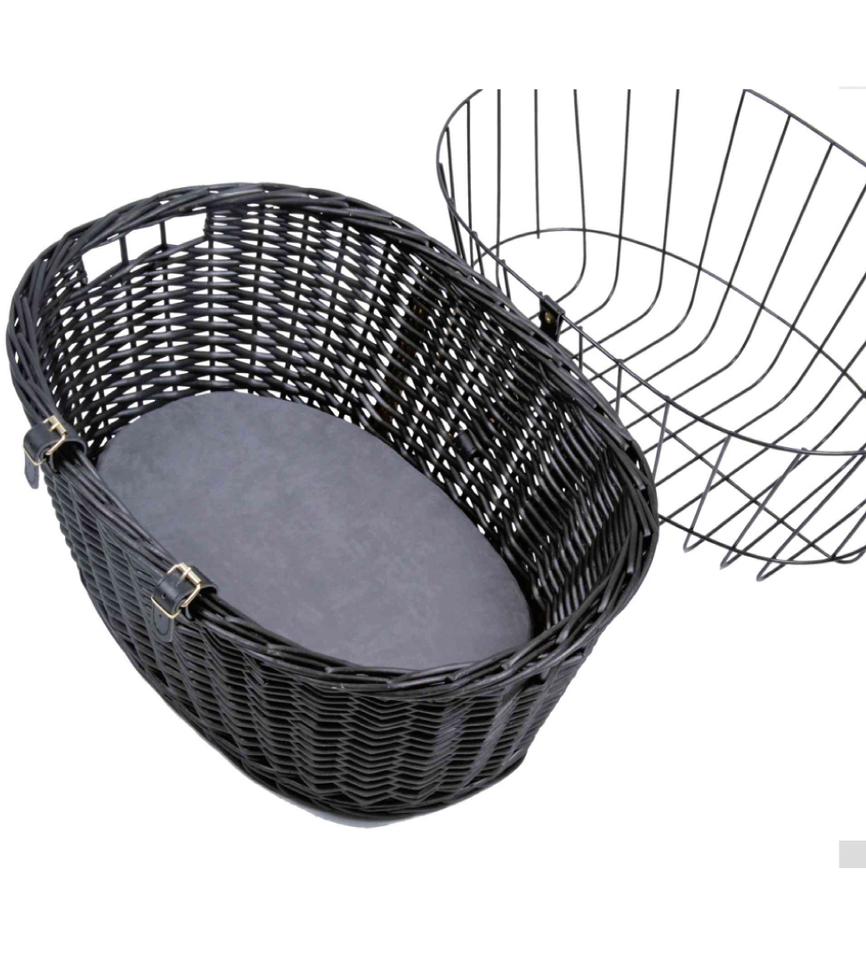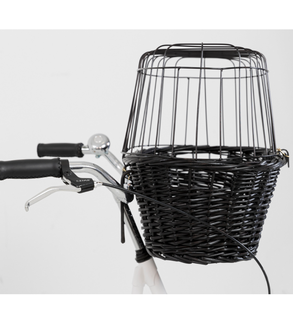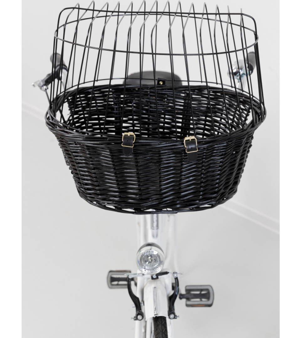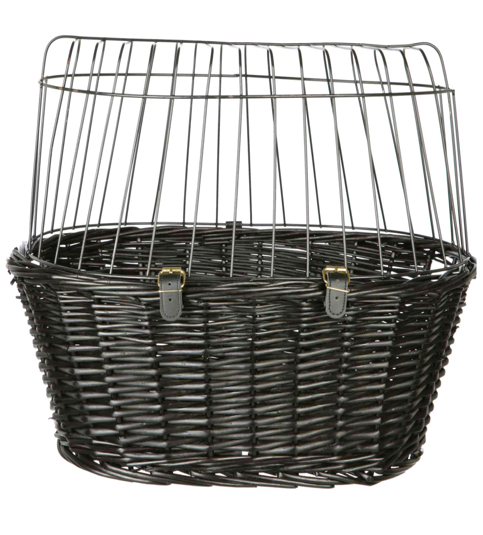 Cesto in vimini per cani da fissare sul manubrio.