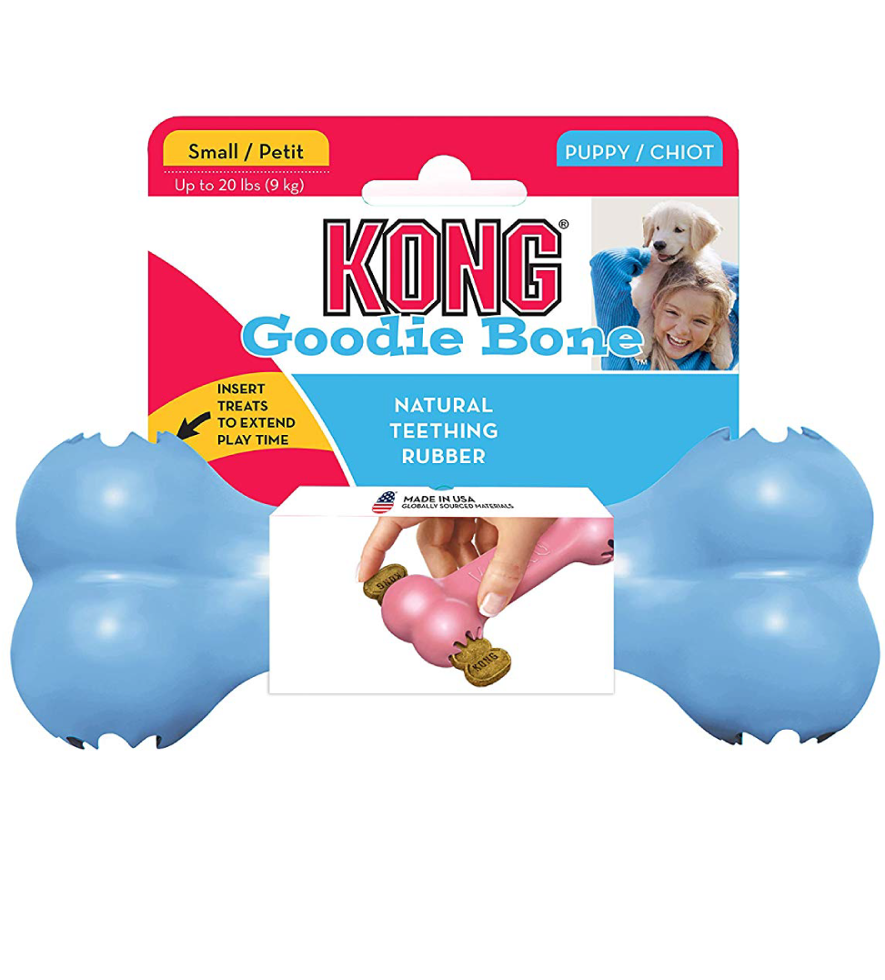 Il Kong Puppy Goodie Bone coinvolge i cuccioli che stanno imparando il comportamento di masticazione appropriato.