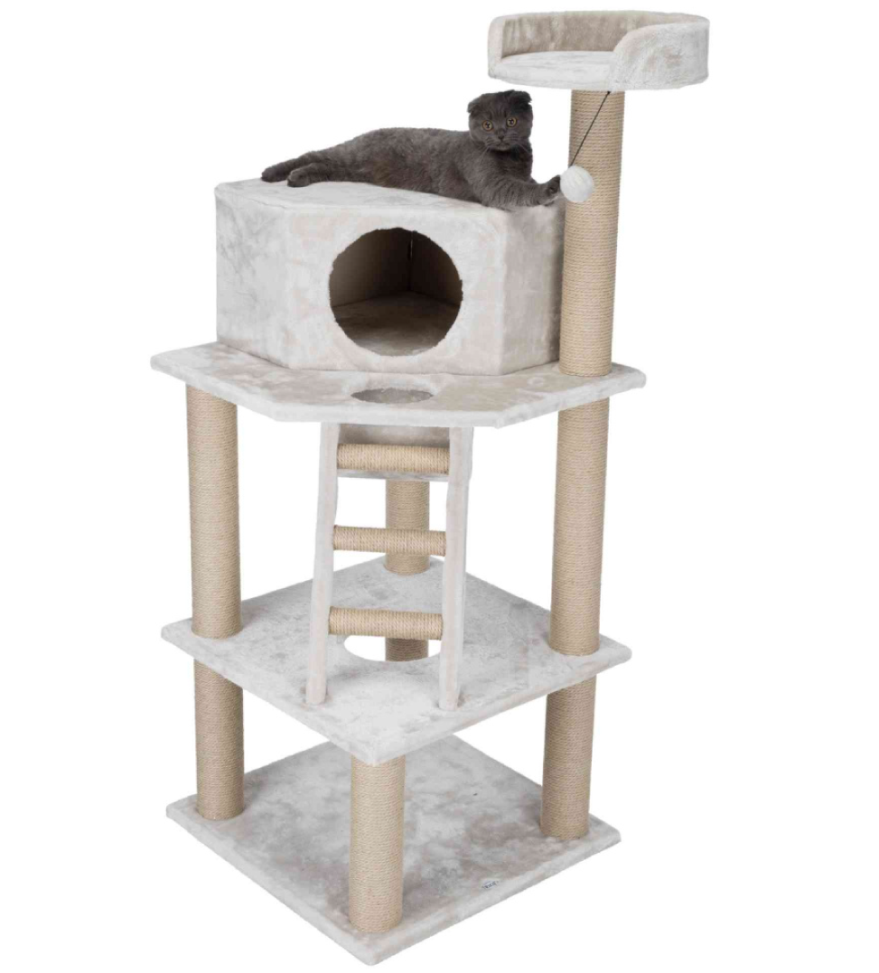 La piattaforma superiore è imbottita in modo da far stare comodo il gatto.