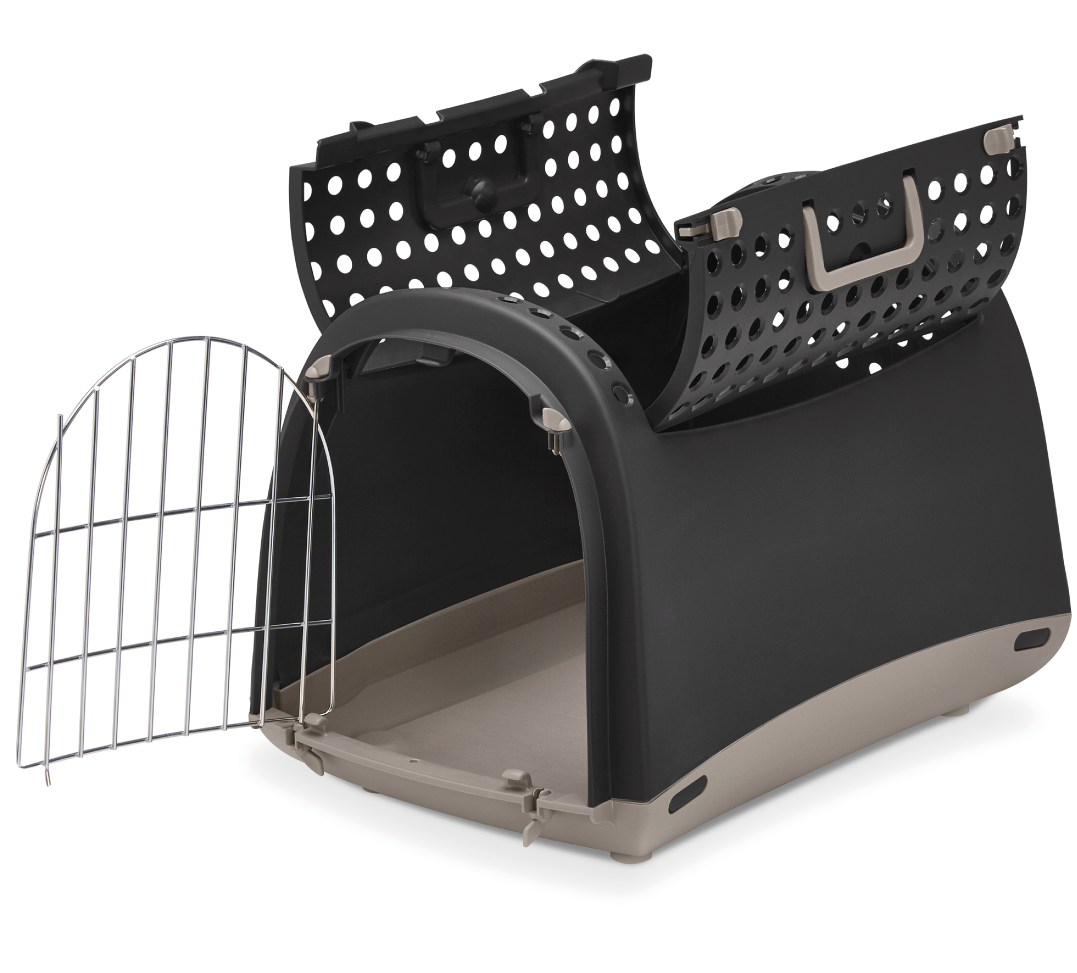 Il trasportino in plastica Linus Cabrio per gatti e cani di piccola taglia è utile per viaggi brevi o per portarlo dal veterinario.