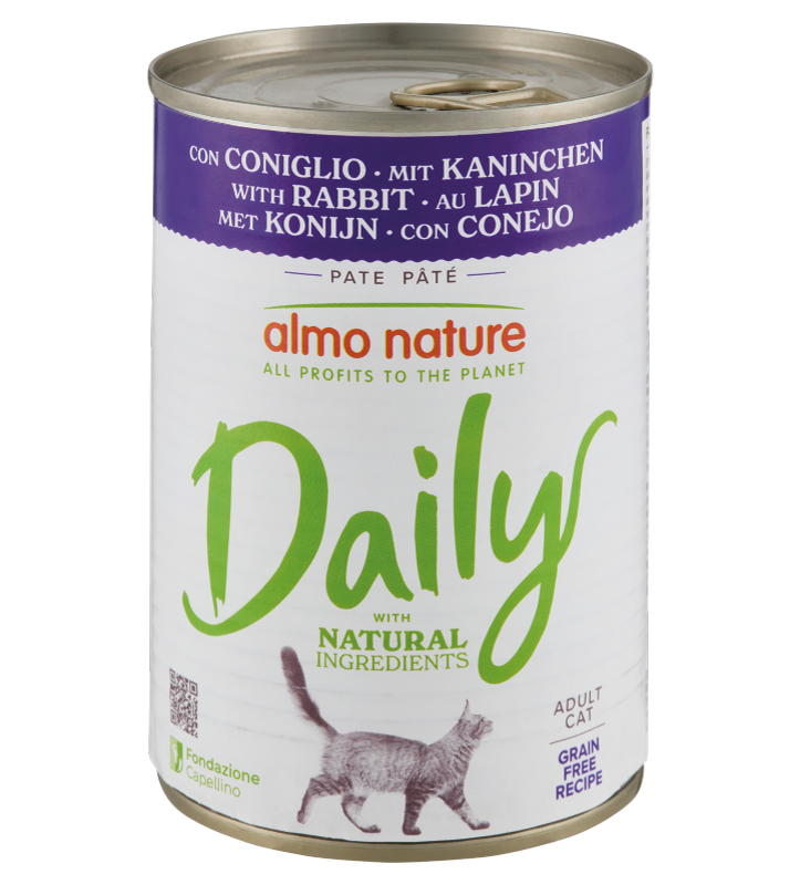 I prodotti Almo Nature Daily Cat non hanno conservanti chimici (BHA, BHT), aromi artificiali e senza coloranti o OGM.