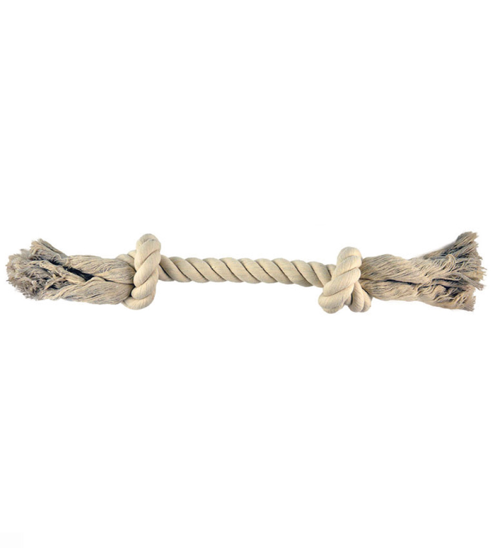 Gioco cotonosso per cani con 2 nodi realizzato con corda in cotone naturale: ideale per giocare a tira e molla con il proprio cane.
