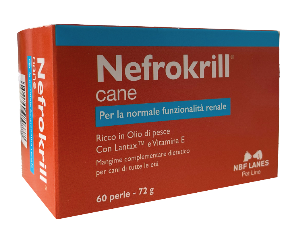 NBF Nefrokrill perle è un mangime complementare dietetico a supporto della funzione renale in caso di insufficienza renale cronica, con particolari fini nutrizionali per cani adulti.