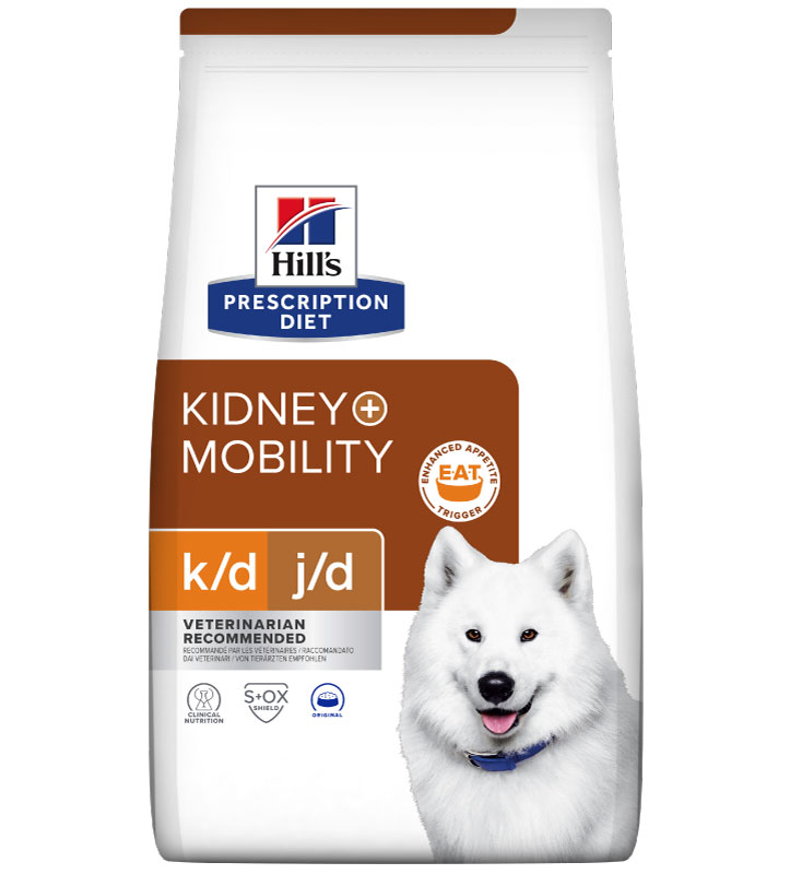 Hill's Prescription Diet Canine k/d + Mobility è un alimento secco per cani adulti formulato per aiutare a sostenere la mobilità & la qualità della vita in cani con condizioni renali.
