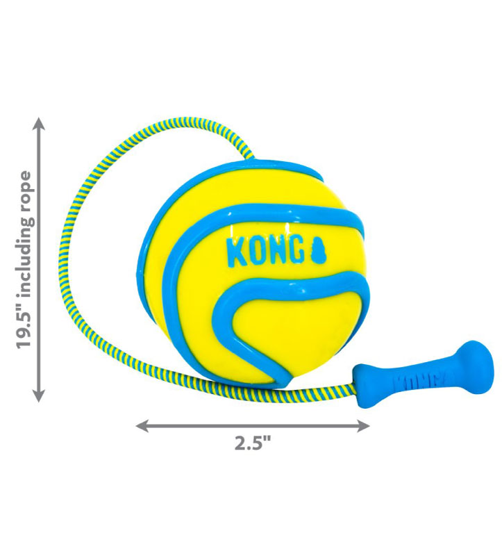 Kong Wavz Bunji Ball è una pallina imprevedibile progettata per essere lanciata a lunghe distanze con una corda elastica unica nel suo genere.