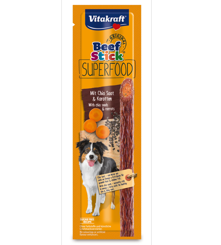Carote e Semi di Chia è naturalmente ricco di carotene e acidi grassi omega 3 per una pelle sana ed un bel manto lucido.