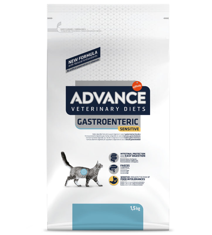 Advance Veterinary Diets Gastroenteric Sensitive è un alimento dietetico completo per gatti adulti che aiuta a compensare le disfunzioni digestive in caso di disturbi gastrointestinali e di insufficienza pancreatica esocrina.