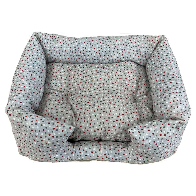 Cuccia rettangolare per cani e gatti con riempimento con truciolo di spugna soffice.