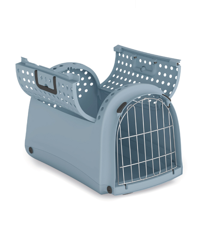 Il trasportino in plastica Linus Cabrio in plastica riciclata per gatti e cani di piccola taglia è utile per viaggi brevi o per portarlo dal veterinario.